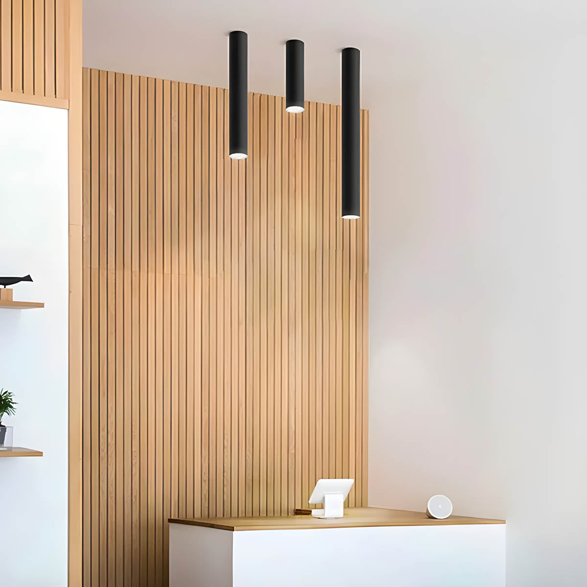 Its sleek, elongated cylindrical form adds a modern architectural touch to any interior, whether installed individually or in clusters.